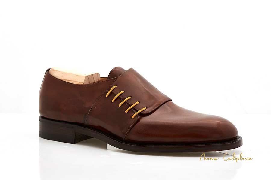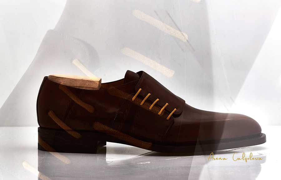 Scarpa uomo su misura. Francesina con allacciatura in parte, Vitello marrone. È possibile realizzare questa scarpa in diversi materiali e colori. Tutte le nostre scarpe vengono realizzate su misura, quindi se hai esigenze specifiche come plantari o numeri grandi o piccoli, non esitare a contattarci.Richiedi informazioni su questo modello